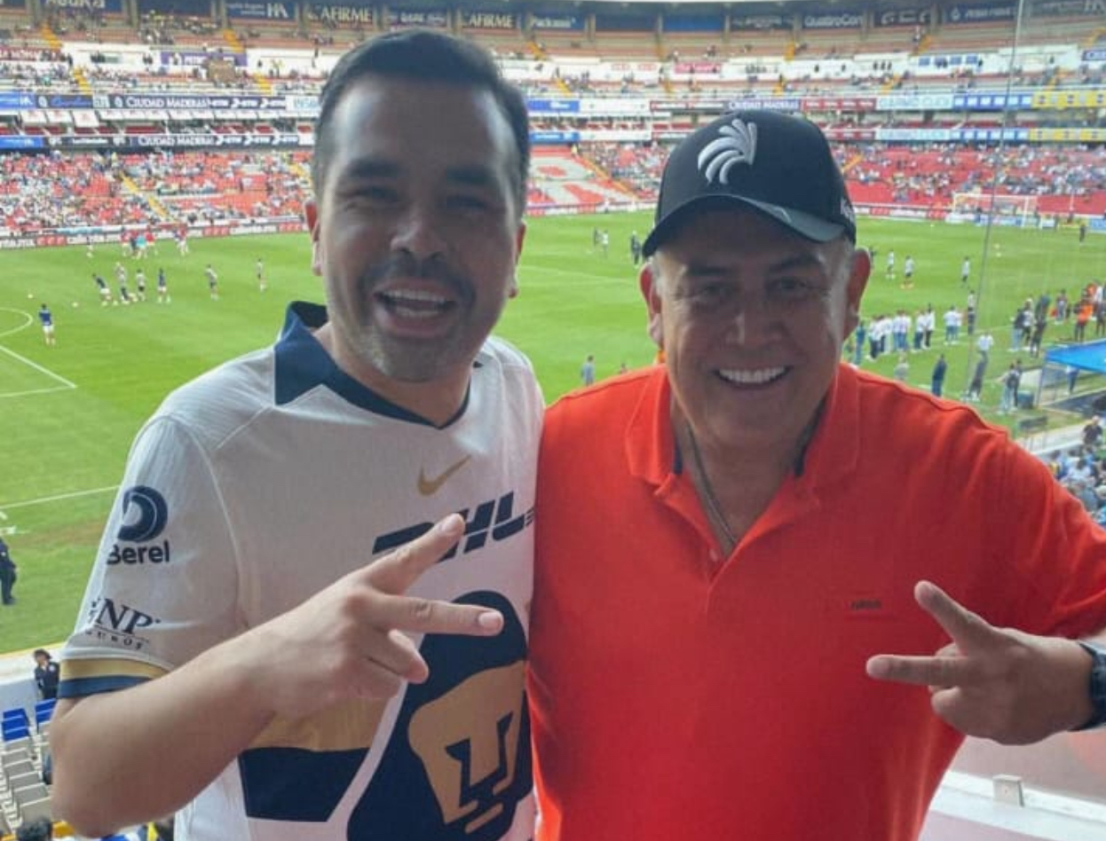 En una fotografía publicada en redes sociales se aprecia a Jorge Álvarez Maynez, dirigente nacional de Movimiento Ciudadano y ex candidato a la presidencia, quien posa en el estadio Corregidora en el partido Querétaro-Pumas, con “Armándolo Juntos” quien posa con una playera naranja.