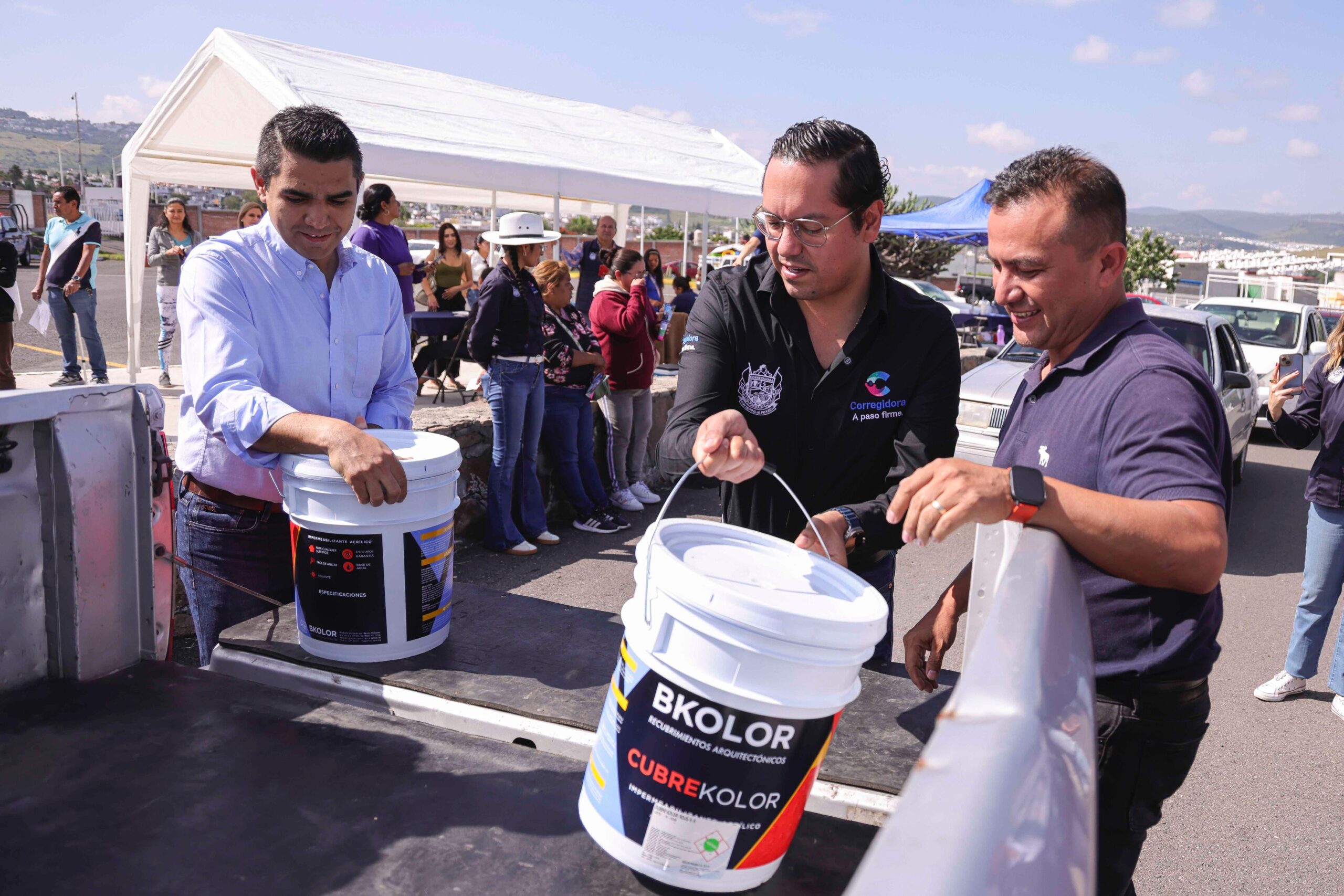 En total, 528 ciudadanos de diversas colonias, comunidades y asentamientos del Municipio de Corregidora resultaron beneficiados, recibiendo dos cubetas de impermeabilizante por persona.