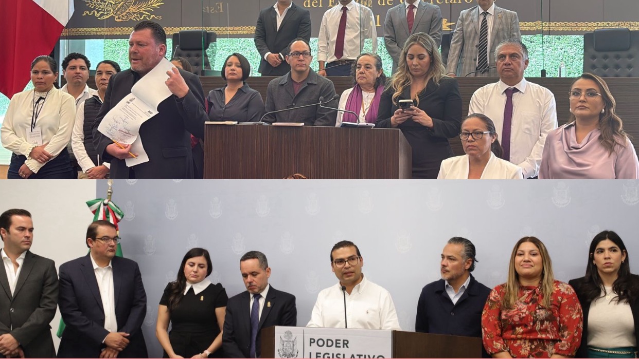 Luego de protagonizar empujones y jaloneos durante la sesión de pleno de este martes donde se suponía que se elegiría a la nueva mesa directiva del Congreso para los siguientes seis meses, las bancadas legislativas del PAN y Morena se acusaron mutuamente de haber ocasionado los incidentes.