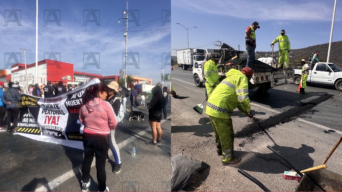 Querétaro, Qro., martes 10 de marzo del 2026.- Un grupo de aproximadamente 100 habitantes de la comunidad de Tlacote el Bajo mantuvo por más de tres horas el cierre del libramiento Surponiente, en su tramo Norte, al cruce con el Boulevard Peñaflor, como exigencia a las autoridades para instalar un puente peatonal, debido a los accidentes fatales, donde personas perdieron la vida al ser atropelladas, como en el caso más reciente ocurrido apenas el pasado viernes 6 de marzo.