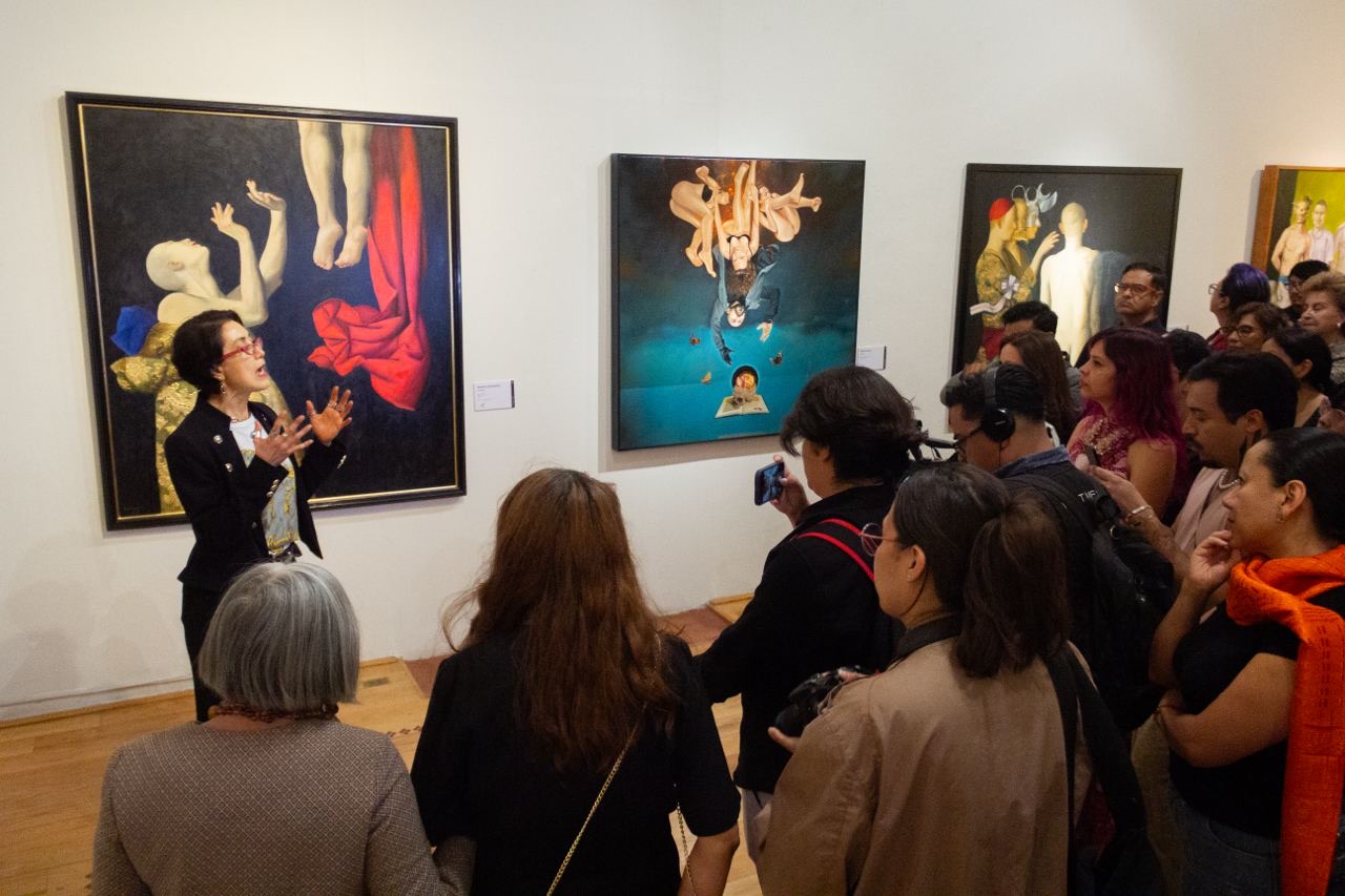 Y en cuanto a la muestra “El Éxtasis de Benjamín Domínguez”, señaló que las obras de la Colección Milenio Arte adentran a las y los espectadores en un universo complejo, que dialoga con lo sacro y lo simbólico, pues a través de una técnica impecable y una sensibilidad única, Domínguez conmueve y desafía, proyectándose hacia el presente y revelando cómo el arte puede ser, al mismo tiempo, refugio y confrontación.