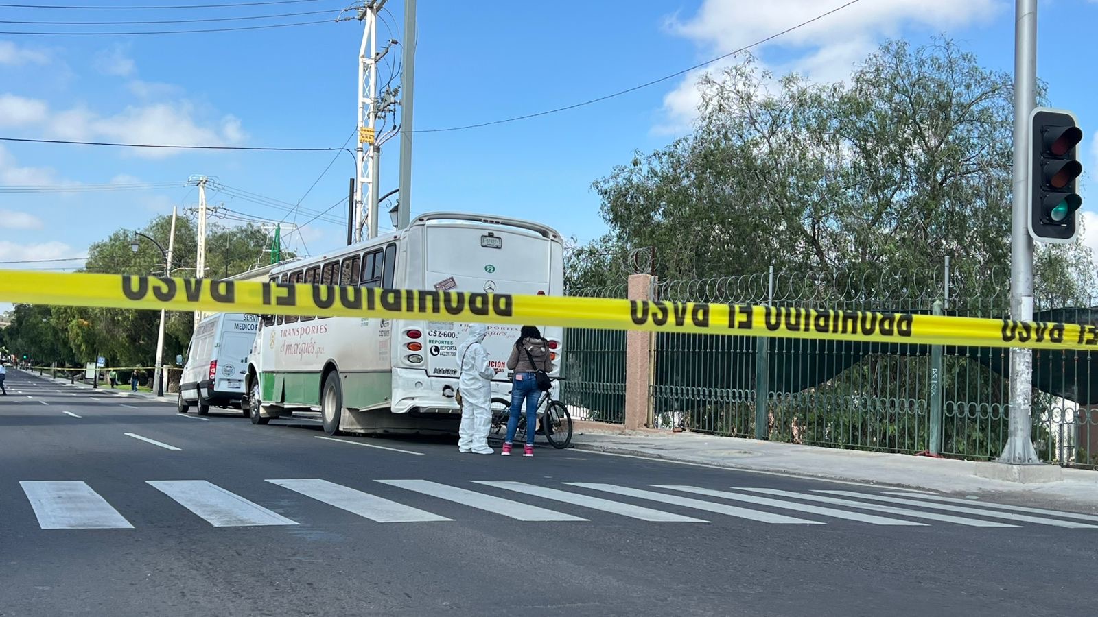 Querétaro, Qro., sábado 30 de agosto del 2025.- Un ciclista murió al ser atropellado por un camión de transporte urbano cuando circulaba sobre la Calzada de Los Arcos, a la altura de la colonia Pathé de la capital queretana.