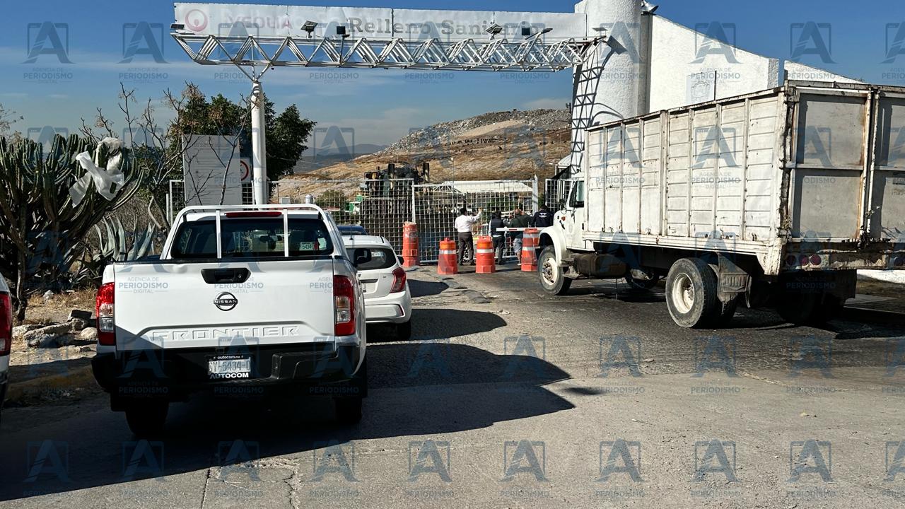 Querétaro, Qro., lunes 26 de enero del 2026.- Trabajadores del relleno sanitario de Mompaní, ubicado en la zona Norponiente de la capital queretana cerraron el acceso a los camiones que llevan desechos a este sitio, como protesta por abusos laborales que afectan sus ingresos.