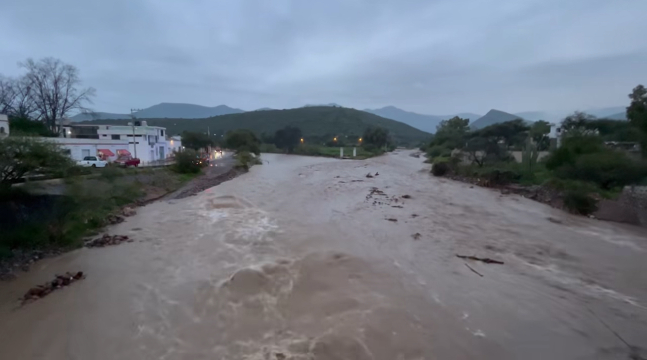 “Tenemos reporte del río en Nogales, donde bien se conoce como la presa de Las Chivas, Casa Blanca también está entrando bastante agua, parte de los arroyos del Blanco que vienen de Chaminal traen bastante agua, de verdad, Tolimán, por favor, ciudadanos que alcanzan a escuchar extrema en precauciones, hay derrumbes también en pequeñas partes de la carretera, vamos a atender tan pronto sea posible, sin embargo, quienes conducen manejen con cuidado y todos los demás, por favor, eviten acercarse al río si no es necesario”.