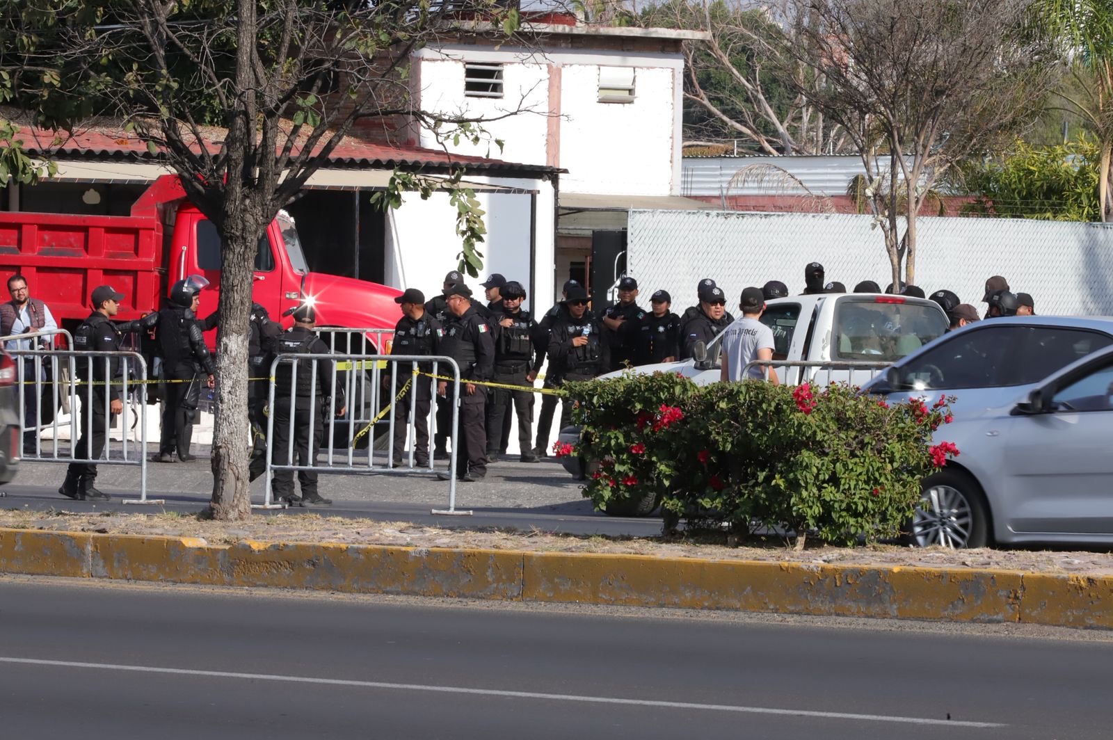 Vallas metálicas fueron colocadas sobre el carril de circulación de extrema derecha en dirección al Centro de Querétaro, así como un gran número de elementos de la Policía Estatal, Caninos y Granaderon que resguardaban los lugares que serían desalojados segun una orden judicial.