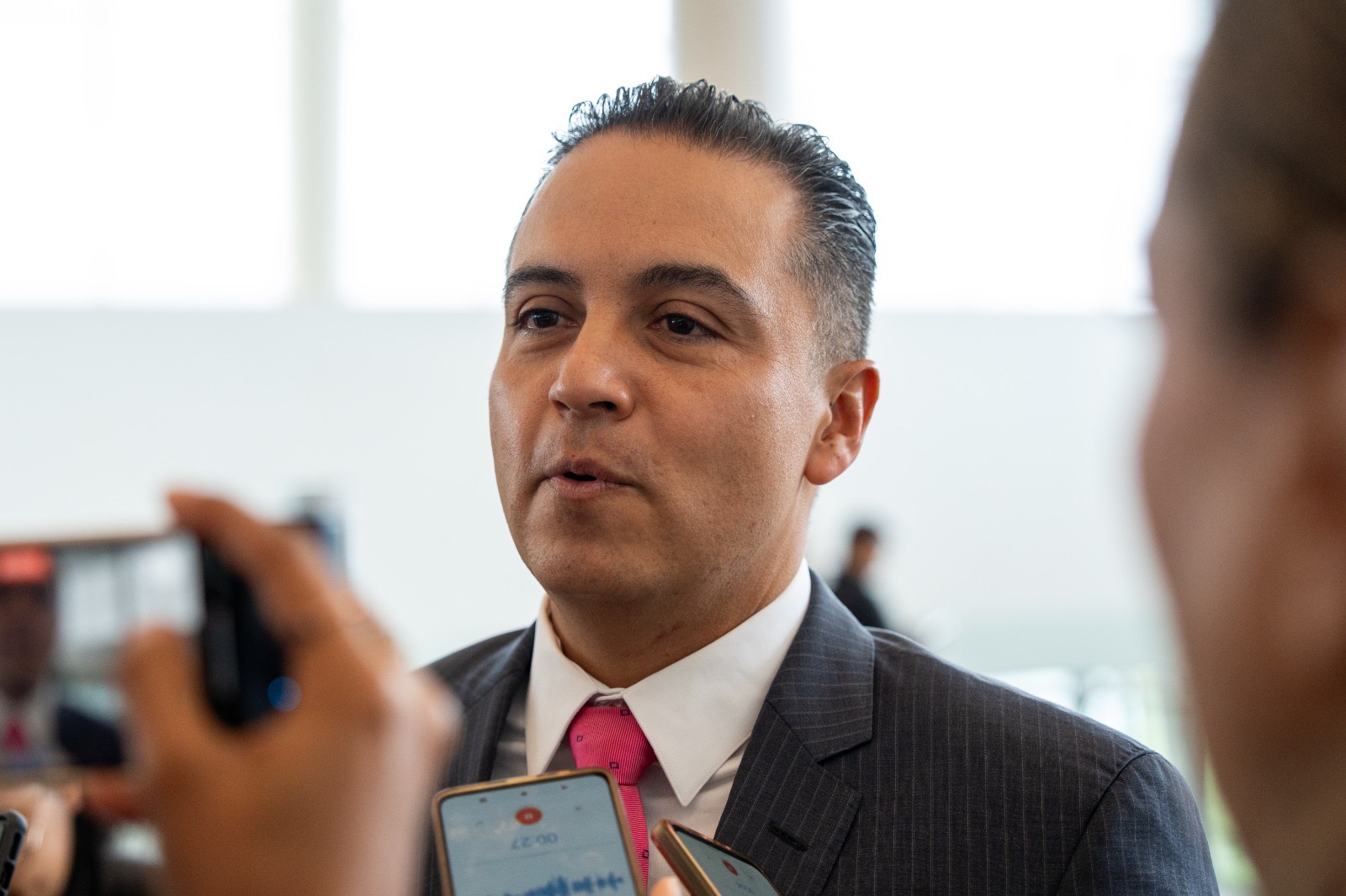 Querétaro, Qro., viernes 10 de septiembre del 2025.- El secretario de gobierno del Poder Ejecutivo, Eric Gudiño Torres, informó que se espera una asistencia de 8 mil personas en el Centro de Congresos de Querétaro para el informe de la presidenta Claudia Sheinbaum.