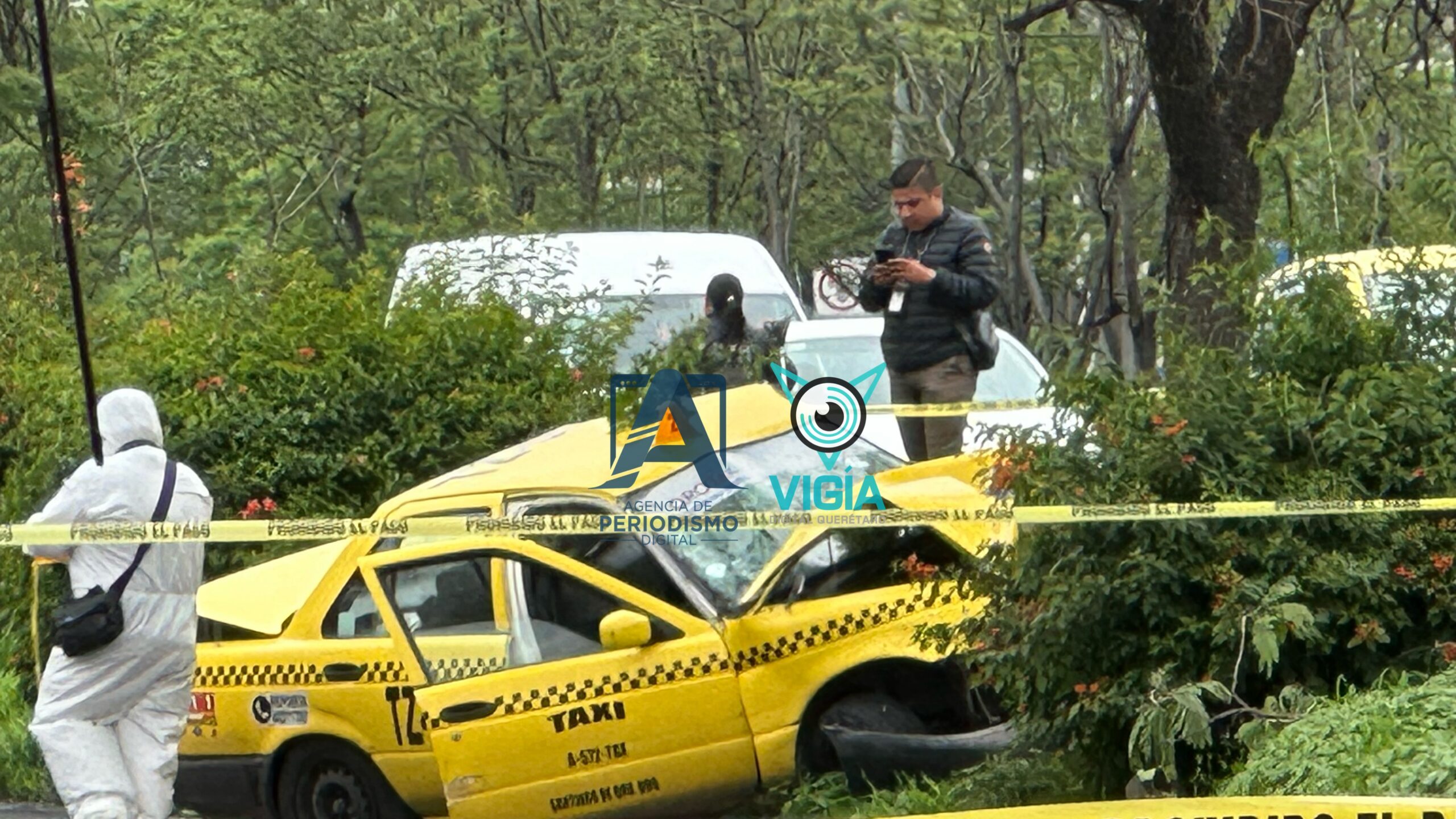 Un hombre que viajaba como pasajero en un taxi de sitio murió al quedar prensado dentro de la carrocería, luego de que el conductor perdió el control de la unidad e impactó contra un árbol en carriles laterales del Boulevard Bernardo Quintana, en la colonia Álamos de la capital queretana.