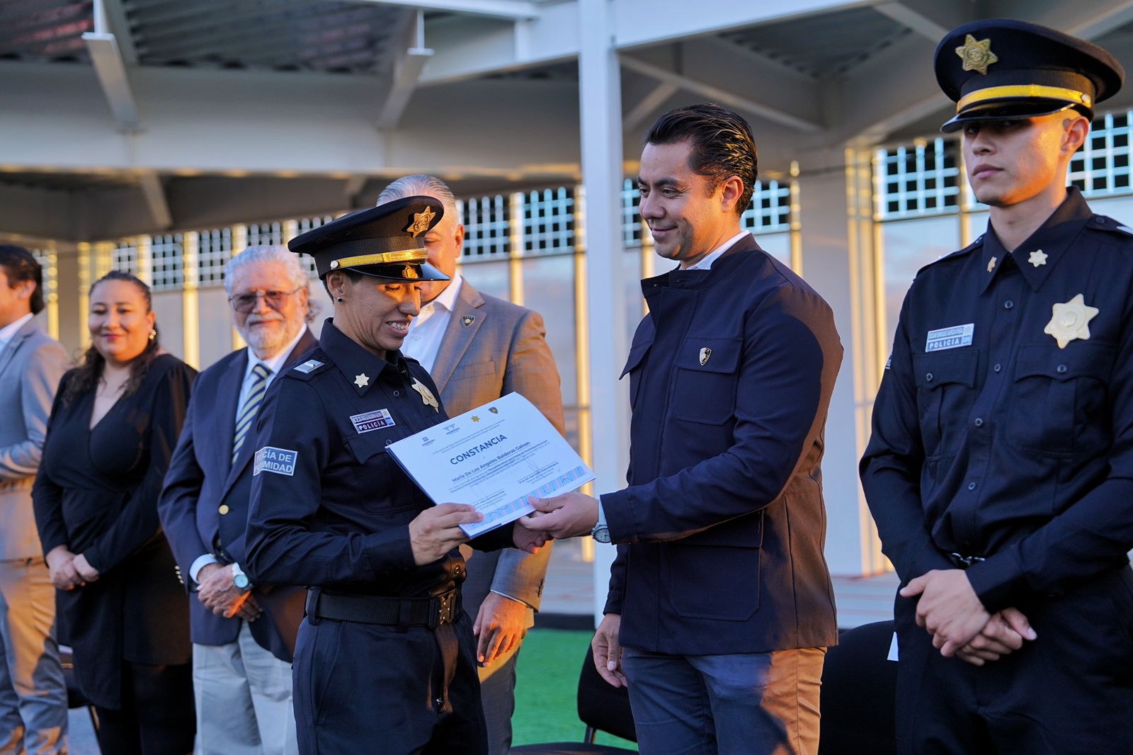 Durante la ceremonia se entregaron constancias a 29 egresados del curso de formación inicial de la segunda generación de la Guardia Cívica: 13 como Guardias Auxiliares, 11 como Guardias Viales y 5 como Guardias Cívicos.