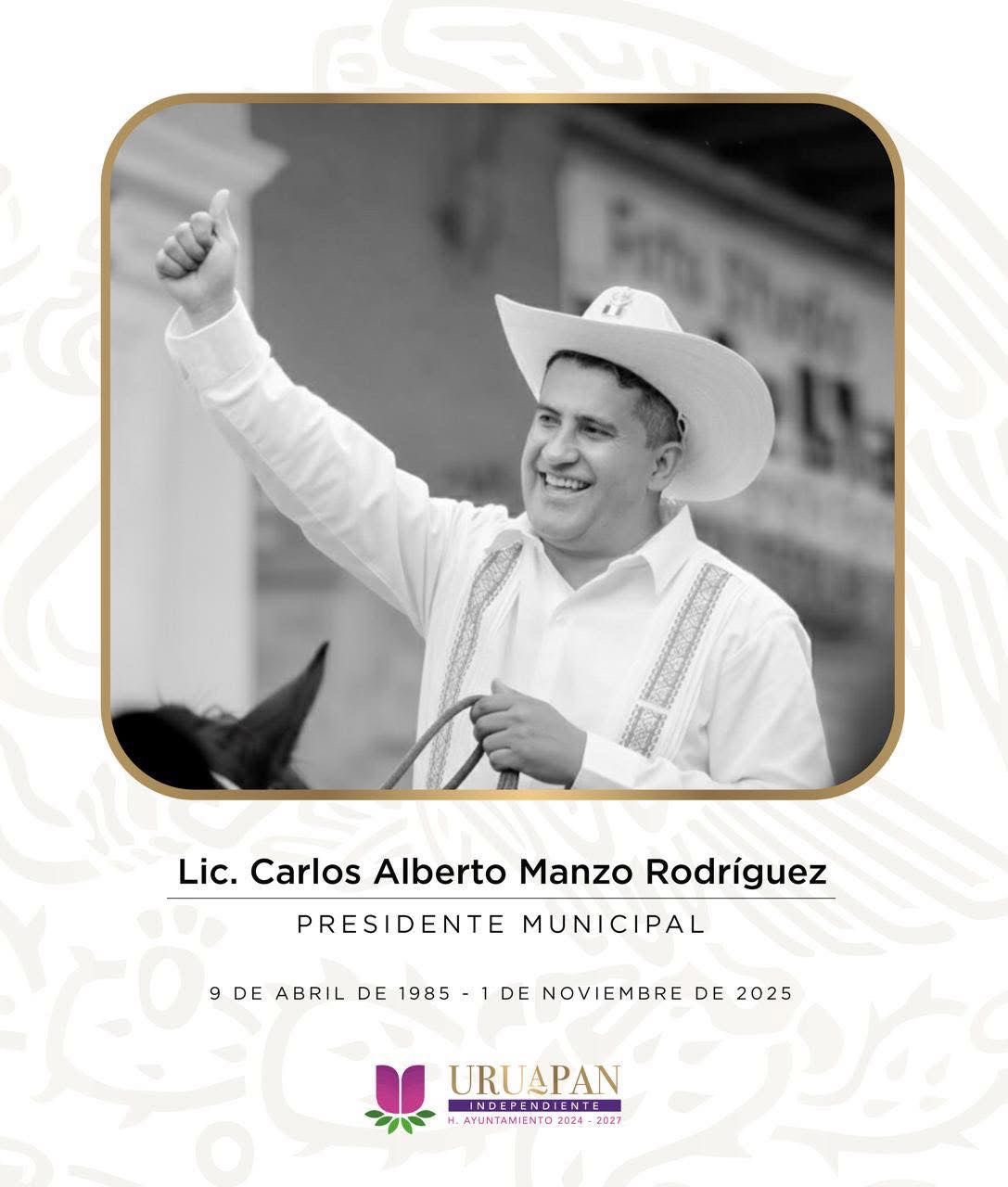 “Condeno con absoluta firmeza el vil asesinato del presidente municipal de Uruapan, Carlos Manzo. Expreso mis más sinceras condolencias a su familia y seres queridos, así como al pueblo de Uruapan ante esta irreparable pérdida”, afirmó en sus redes sociales.