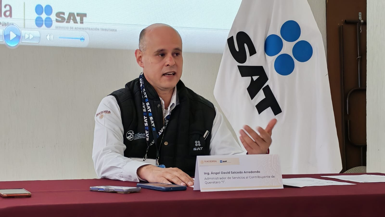 Querétaro, Qro., martes 27 de enero del 2026.- Los empleadores, negocios o particulares que exijan la constancia de situación fiscal como requisito obligatorio para expedir una factura a personas físicas o morales podrán ser objeto de sanciones económicas de hasta 122 mil 440 pesos, así lo dio a conocer el Administrador Desconcentrado de Servicios al Contribuyente de Querétaro del Servicio de Administración Tributaria (SAT), adscrito a la Secretaría de Hacienda Credito Público (SHCP), Ángel David Salcedo Arredondo.