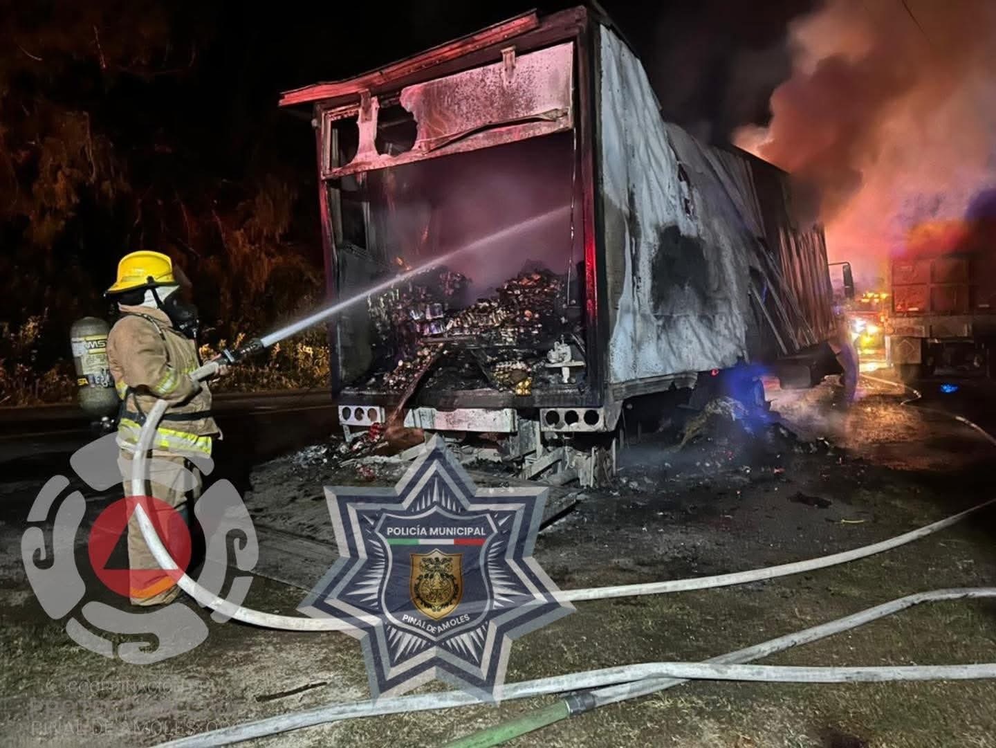 Pinal de Amoles, Qro.,-La noche de este martes, alrededor de las 22:49 horas, se registró el incendio de un camión cargado con abarrotes en la comunidad de Cuesta de Huatmazontla, perteneciente al municipio de Pinal de Amoles.