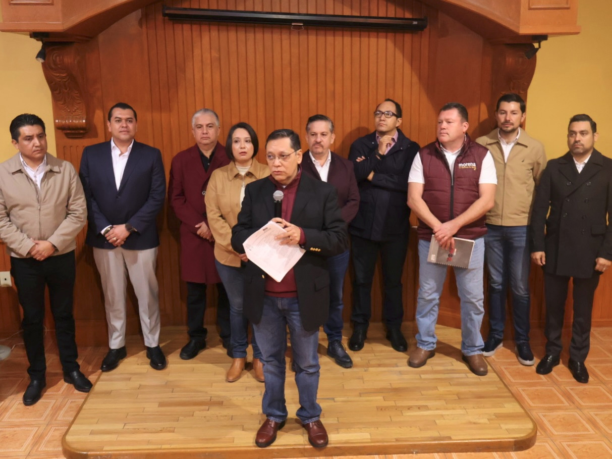 Querétaro, Qro., lunes 5 de diciembre del 2025.- Diputadas y diputados Morena destacaron en rueda de prensa los cambios hechos al Presupuesto de Egresos 2025 en la Comisión de Planeación y Presupuesto.