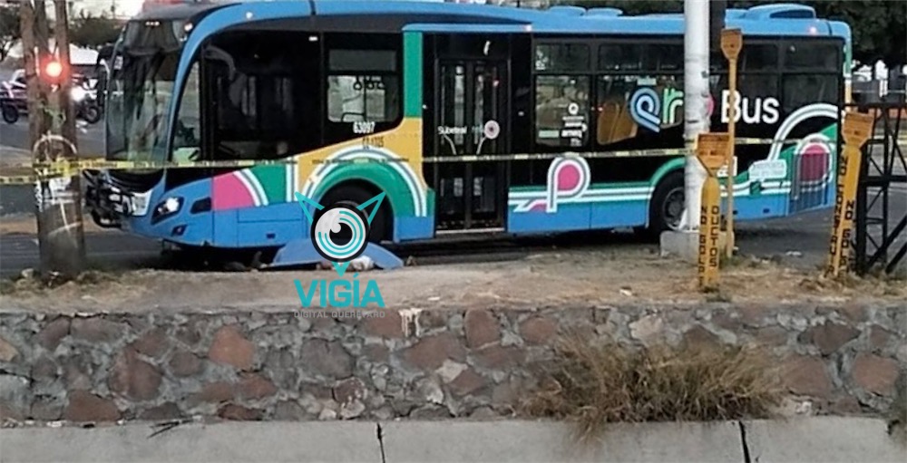 Querétaro, Qro., viernes 20 de febrero del 2026.- Un motociclista murió de manera casi instantánea, al ser atropellado por un camión de QroBus, en el cruce de la avenida de la Luz y avenida revolución, en la colonia Satélite de la capital queretana.