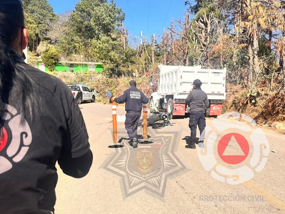 Pinal de Amoles, Qro., jueves 26 de febrero del 2026.- Un motociclista perdió la vida a la impactar por el cáncer contra la parte posterior de un camión materialista, esto, cuando ambas unidades circulaban sobre la carretera a San Pedro Escanela, a la altura de la comunidad de Durazno de San Francisco.