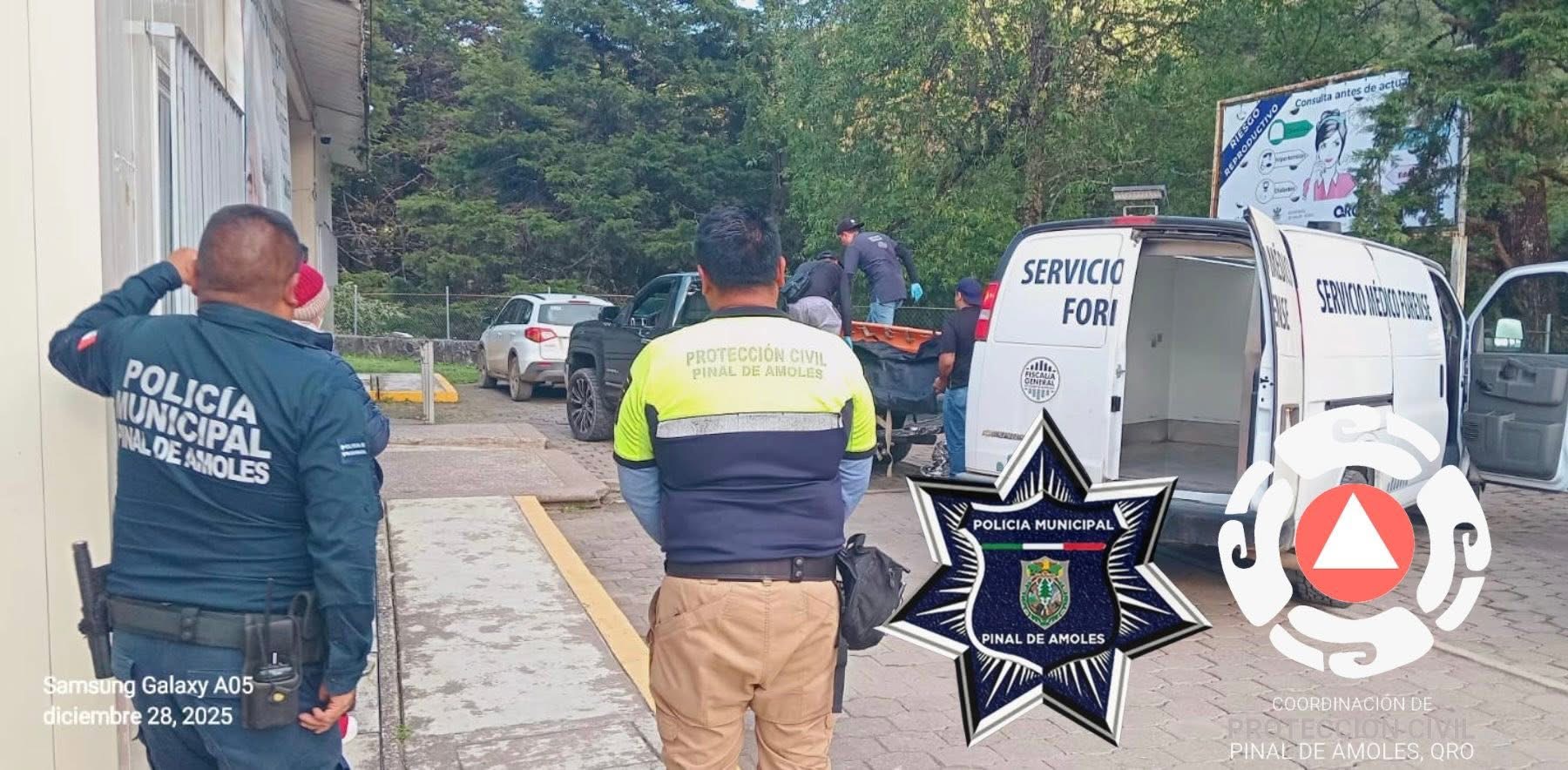 El vehículo fue interceptado a la altura de la gasolinera móvil de la cabecera municipal en el kilómetro 138+500, donde se observó al paciente en estado crítico, iniciándose de inmediato maniobras de reanimación cardiopulmonar (RCP). Posteriormente, se indicó al conductor dirigirse al Centro de Salud de Pinal de Amoles, donde la persona fue recibida por personal médico. Tras la valoración correspondiente, se corroboró la ausencia de signos vitales y se determinó la suspensión de las maniobras de RCP.