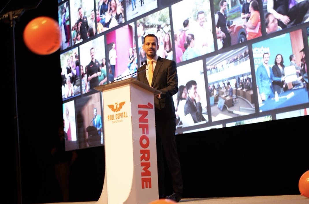 Querétaro, Qro., miércoles de septiembre del 2025.- Con 101 iniciativas presentadas, 38 aprobadas, de las cuales 9 leyes, fueron aprobadas en el último año; el diputado Paul Ospital, rinde su 1er Informe de Actividades.