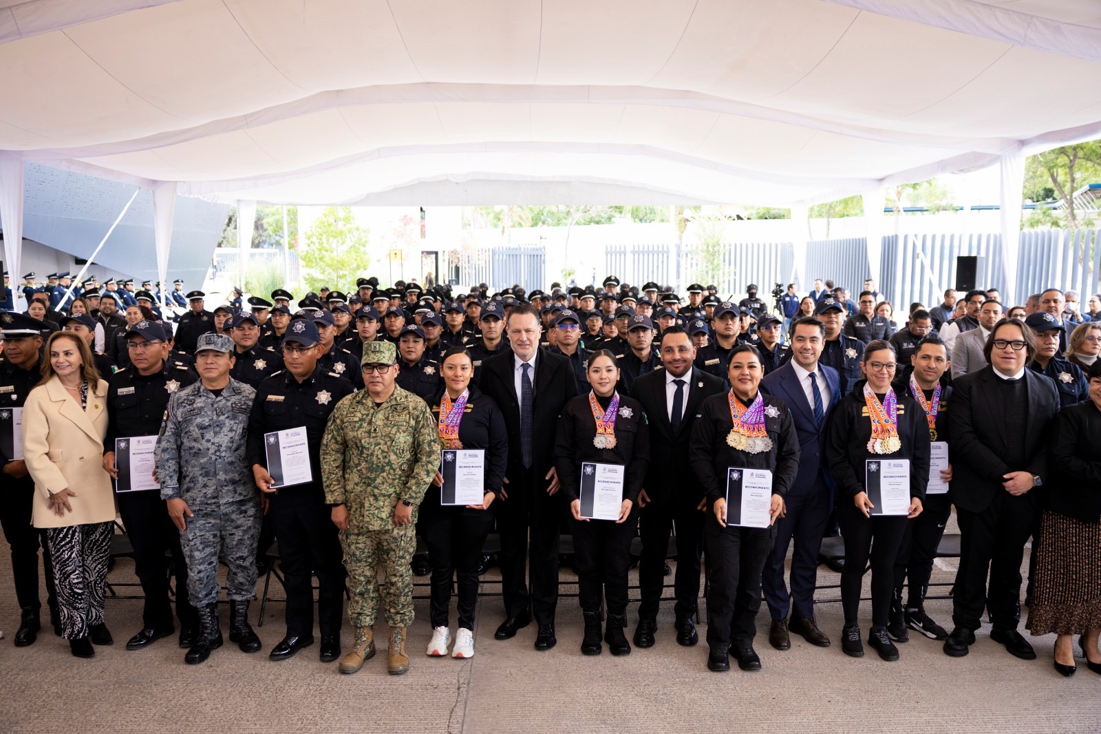 “Porque ser policía también es inspirar con el ejemplo, demostrar que la fuerza del cuerpo y de la mente se nutren de los mismos principios, la constancia, la unidad y la pasión por mejorar cada día. Ambos tipos de acciones, salvar vidas y representar con orgullo, son expresiones distintas del mismo espíritu, el de servir con propósito y con grandeza. Hoy, más que medallas o reconocimientos, entregamos un mensaje de admiración, respeto y gratitud. Señor Gobernador, nos acompaña una parte importante de laPolicía Estatal de Querétaro, hombres y mujeres con capacidad comprobada, alto sentido de pertenencia y una enorme vocación de servicio que los ha llevado a posicionar a nuestra agencia de seguridad y a todo el estado como un referente nacional”, resaltó.