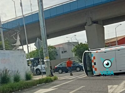 Choque y volcadura de vehículo en avenida Cimatario